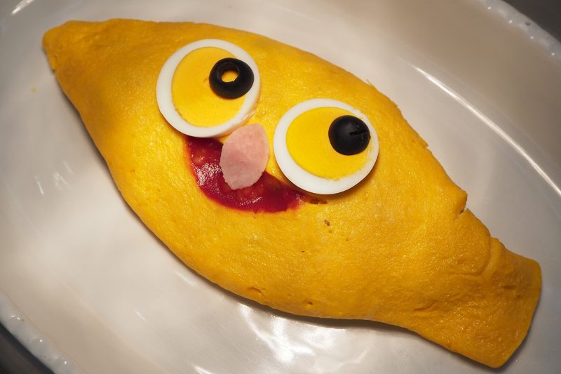 「お化けタコ焼き」チーズを被ったタコ焼きの下には茄子がこっそり!野菜が嫌いなお子様も楽しく食べられる一品です お化けの表情もそれぞれ違うので、どれを食べようか迷うかも!