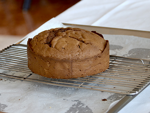 焼きあがったケーキをスライスしていきます![]()