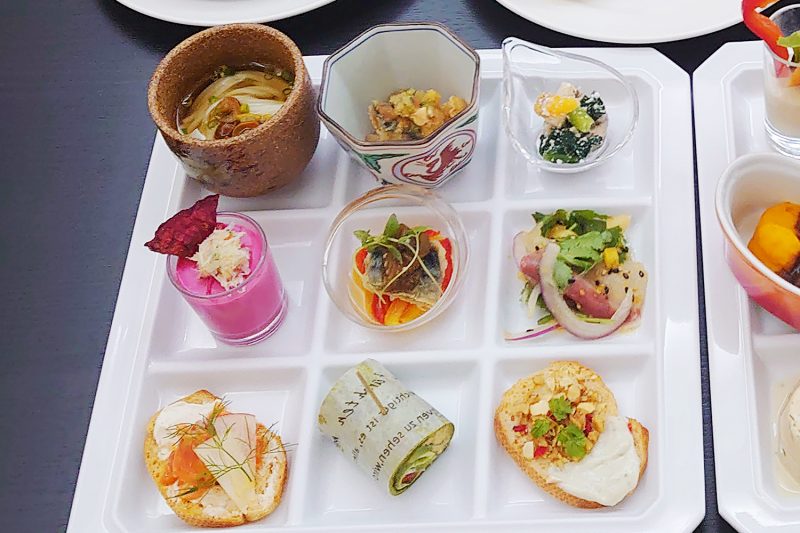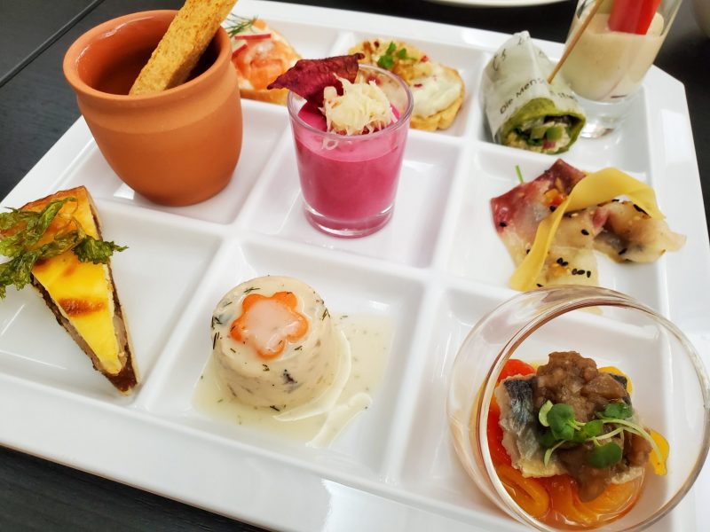 「ビーツのムースと蟹サラダ」(写真中央真ん中)はビーツの爽やかな酸味と口どけの良いムースが抜群の組み合わせ!