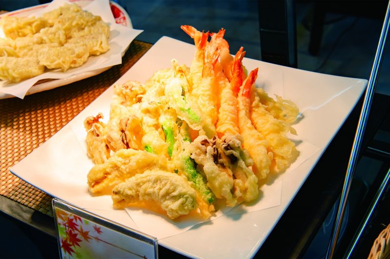 秋の食材を使った「秋の味覚の天ぷら」は秋らしい食材と天ぷらのサクサク食感が何個も食べたくなる人気メニュー!
