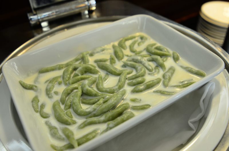 「青虫のニョッキクリームソース」青虫がクリームソースに落ち込んでしまった!?リアルな見た目で「コワいい!」と思っちゃうけど、味はまろやかでやさしい![]()