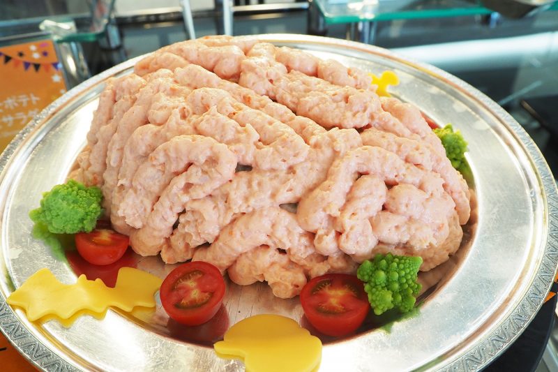 「脳みそポテト海老サラダ」美味しいポテトサラダですが、取り分ける前はちょっとリアルな脳みその形。インパクトはNo.1かも![]()