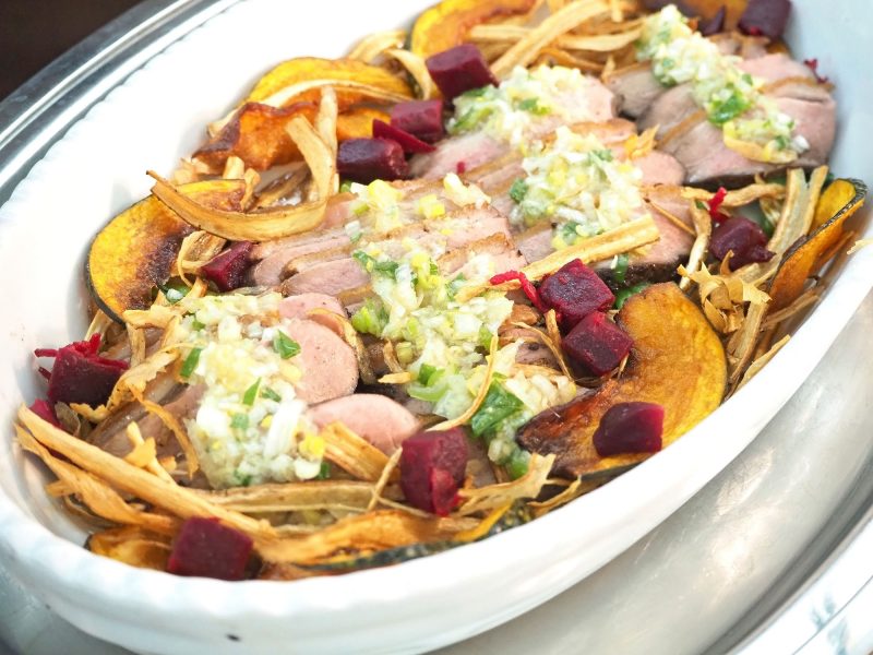 香り高いネギのたれと鴨肉の相性が絶妙な「鴨肉のスパイス焼き ねぎ生姜塩タレ」(写真中央下)もお見逃しなく!