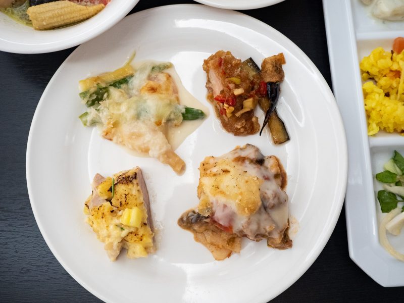 『薄切り豚とマンゴーのアジアンサラダ』(写真下段真ん中)はナンプラーとマンゴーで甘酸っぱい!癖になる美味しさです。タレが豚肉によく染みて、玉ねぎがいいアクセントに!