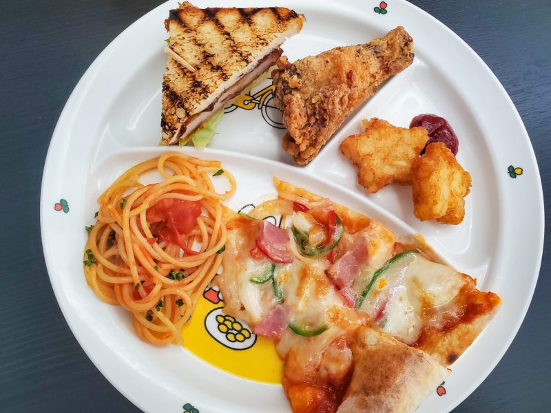 先ほど紹介したカツサンド、香りが良い「スパイシーチキン」やトマトソースのパスタ、ポテトに加え、プリプリの海老とフワフワ卵の優しい美味しさでお子様にも食べやすい「チーズシュリンプオムレツ」、「ミックスピッツァ」などを集めて、お子様プレートにしても楽しいですね![]()