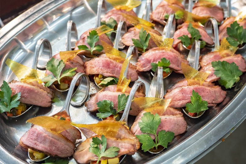 『鴨とリンゴのピンチョス』は、スモーク香る程よい塩気の鴨と、リンゴが美味しい!いくつでも食べたくなる冷製メニューです。