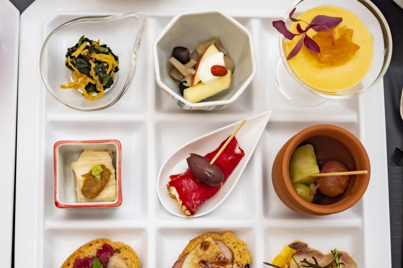 『キノコとマスカルポーネ』(写真上段真ん中)は、ブナシメジやマイタケ、エリンギなどのキノコの旨味をマスカルポーネがまろやかに包み、リンゴとクコの実が食欲をそそります![]()