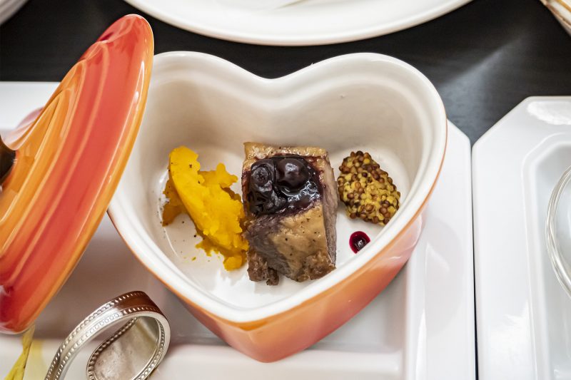 『イベリコ豚のカシスロースト』はローストしたイベリコ豚のジュワっと広がる旨味と、カシスソース&マスタードのさっぱりした味わいがマッチ!