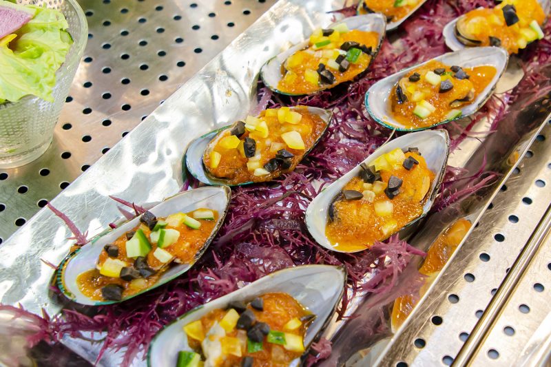 『ムール貝のスパニッシュマリネ』は、黒オリーブやパプリカの入ったピリ辛のサルサソースとムール貝の旨味に舌鼓♪