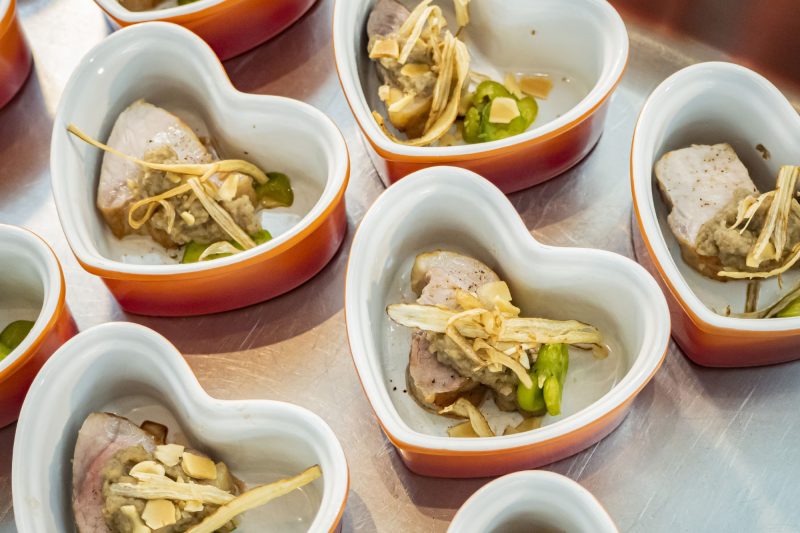 『ポークロティ 春牛蒡のクーリー』は、しっとりしたポークにペーストした春牛蒡とパリパリの牛蒡、アーモンドスライスが乗って香りと食感も楽しめる一品。サクサクの揚げそら豆にも春を感じます![]()