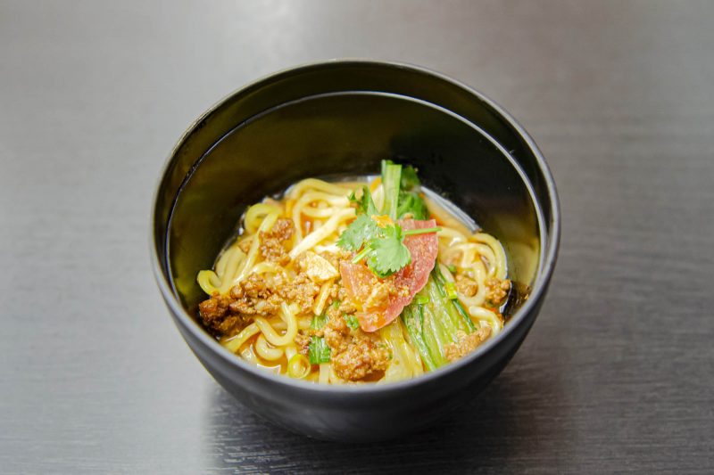 「担々麺 薬味添え」はピリ辛のラー油やパクチーを追加してお好みのカスタマイズOK![]()