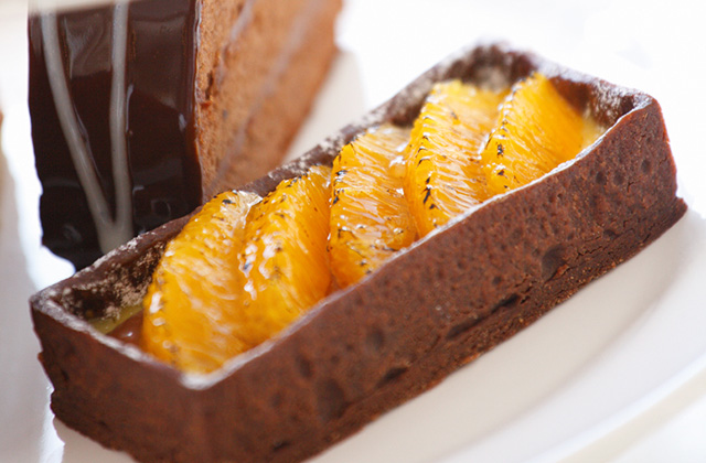 しっとりとしたスポンジとビターなチョコレートに、オレンジの爽やかな風味を楽しめる逸品。