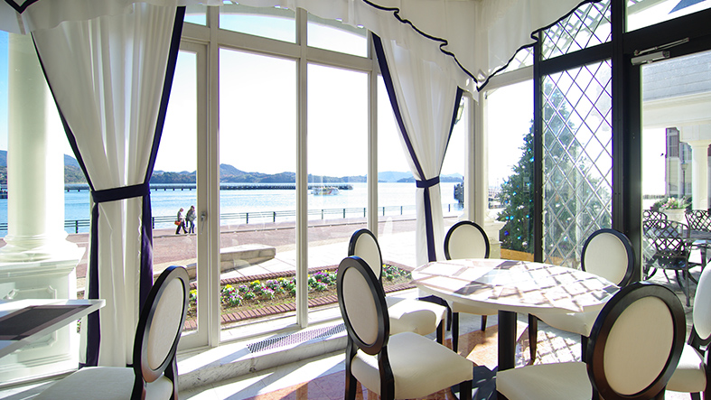白を基調とした開放的な店内から望む碧くゆったりと広がる大村湾を見ながら「ティークリッパー」のテーマ”Simply Refreshing”で月替わりのスイーツとこだわりの コーヒー・紅茶で午後の贅沢なカフェタイムをお過ごしください。